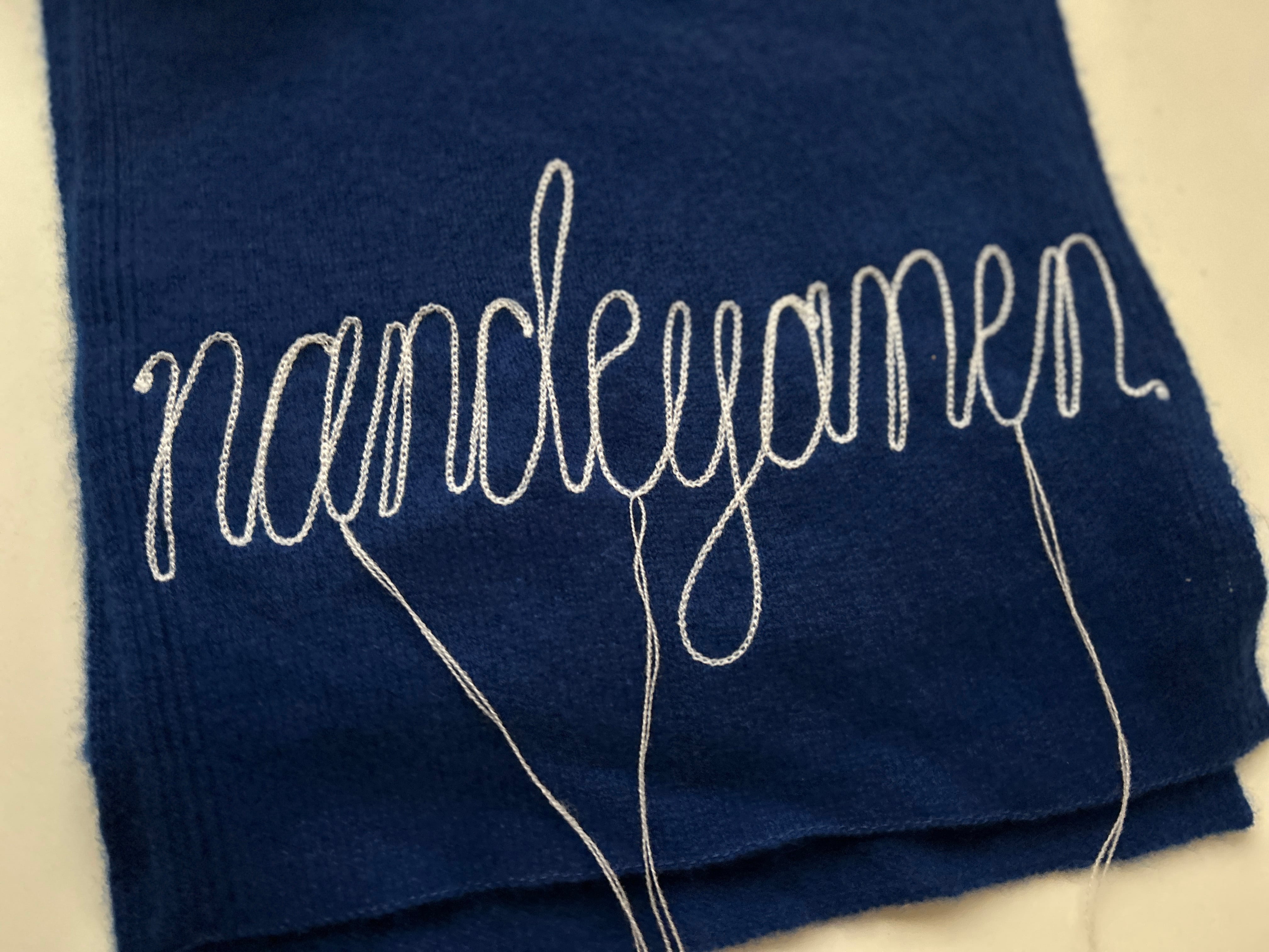HOKOS BLISSカシミヤシリーズにあそび心のある刺繍のミニストールを作りました。