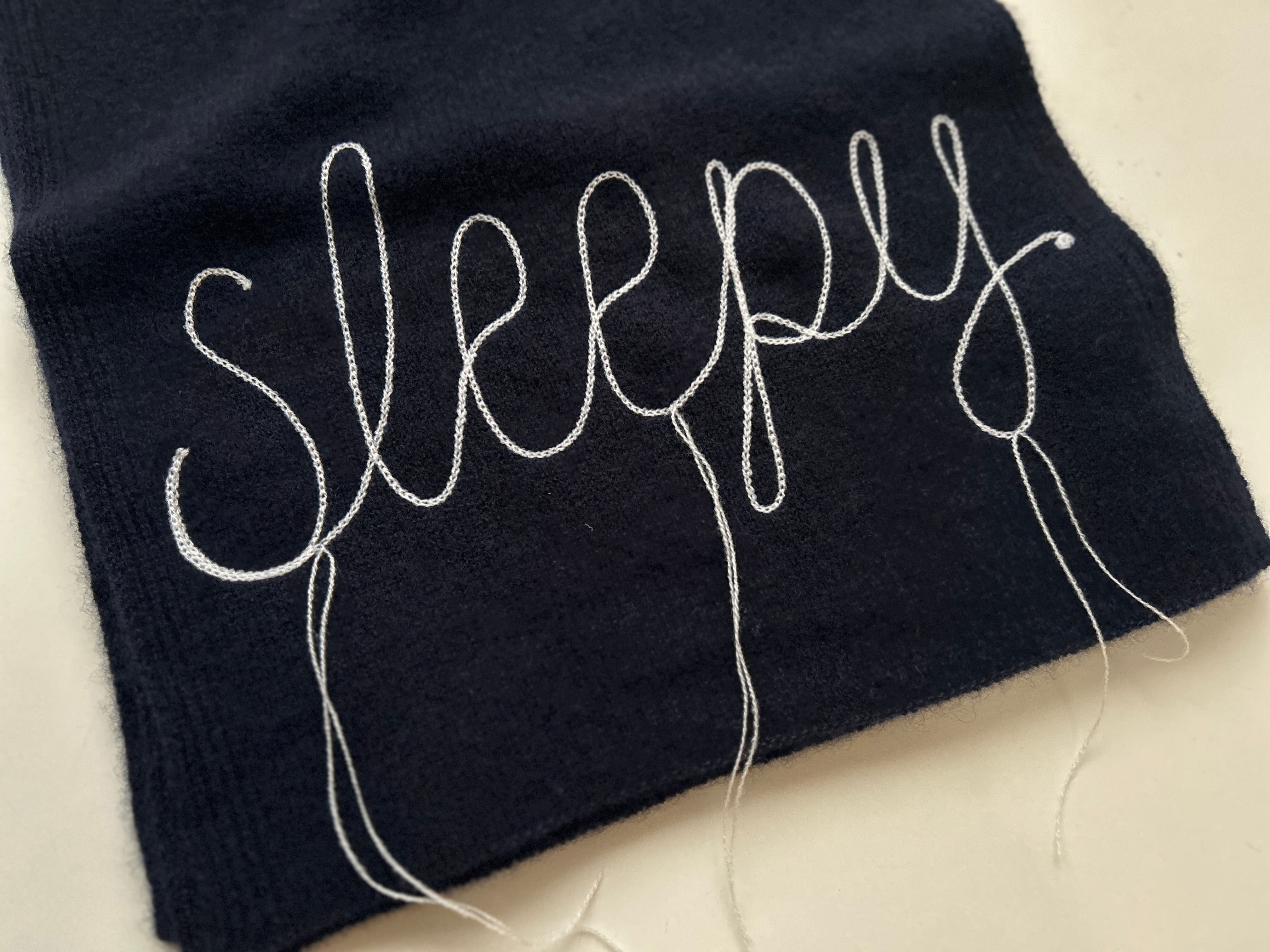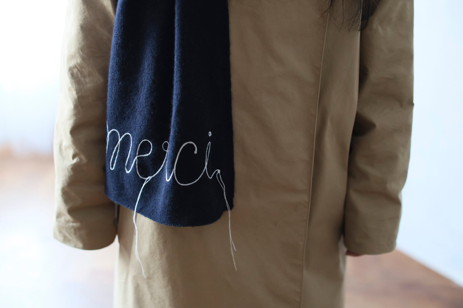HOKOS BLISSカシミヤシリーズにあそび心のある刺繍のミニストールを作りました。