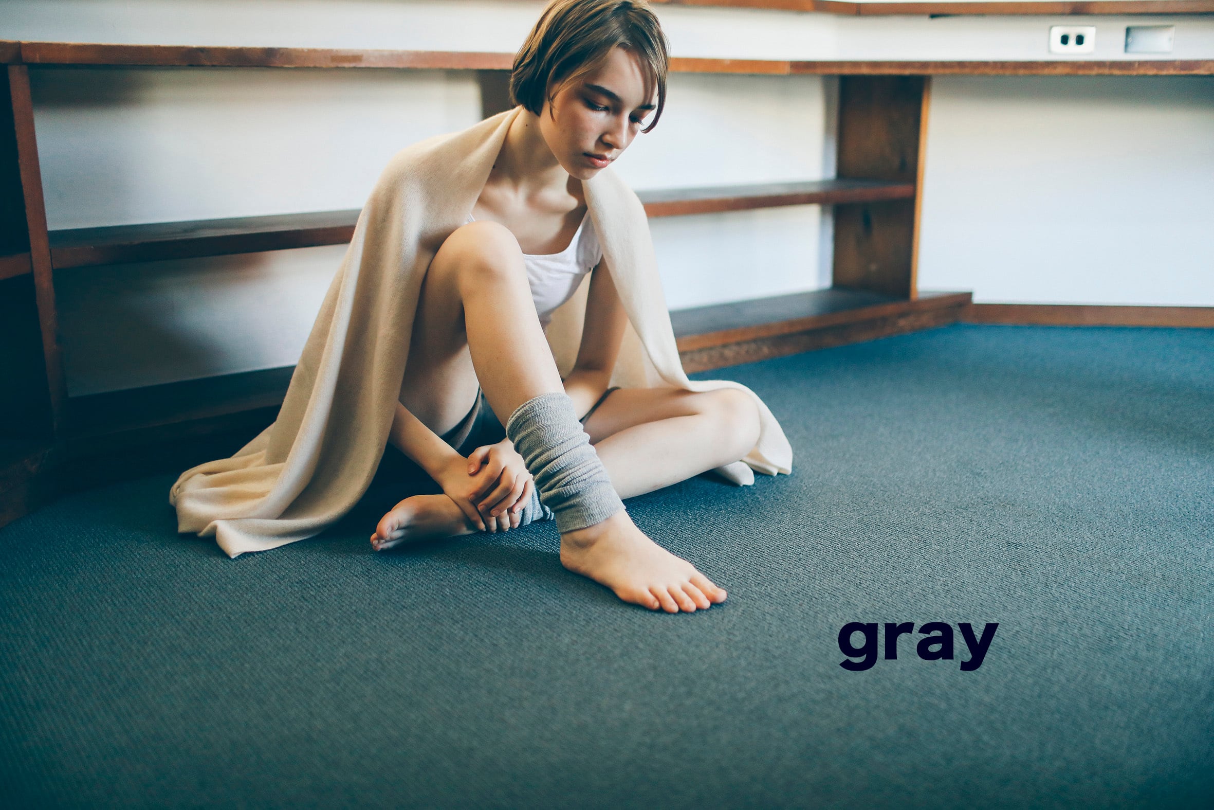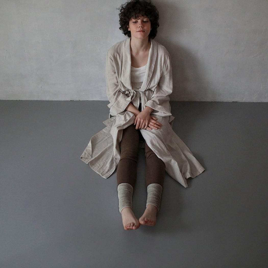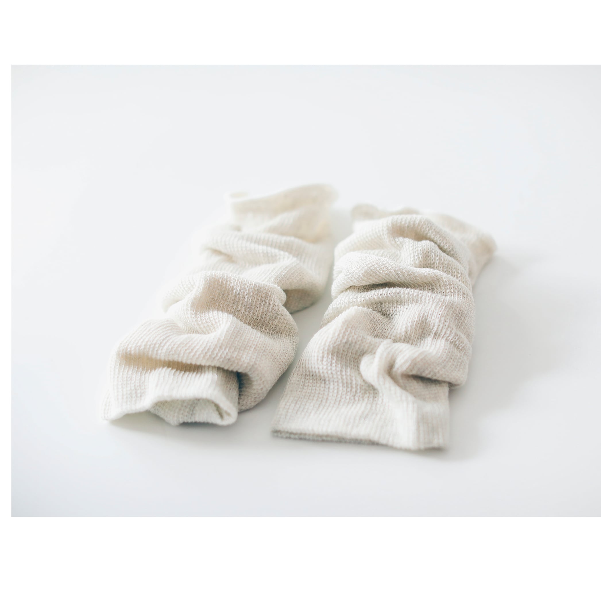 寝るときなどの軽やかな装いに、足首だけアンクルウォーマーを。